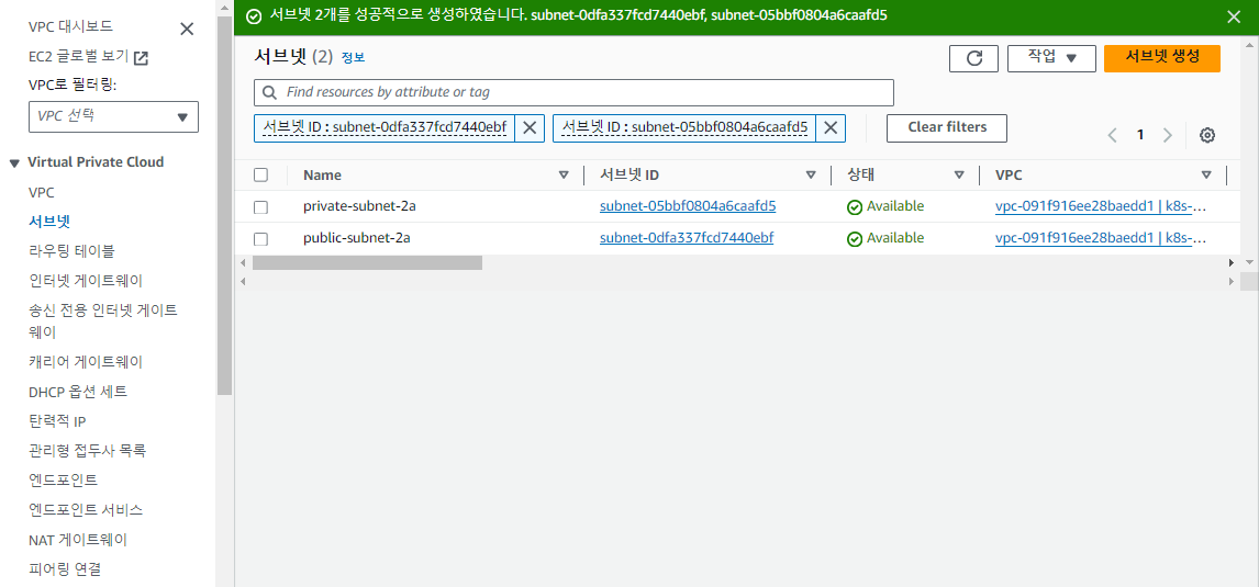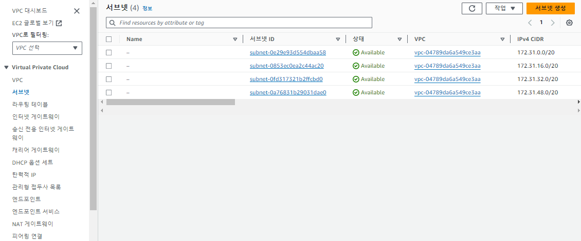 서브넷은 VPC의 IP 주소 범위입니다. VPC를 생성한 후 각 가용 영역에 하나 이상의 서브넷을 추가할 수 있습니다.