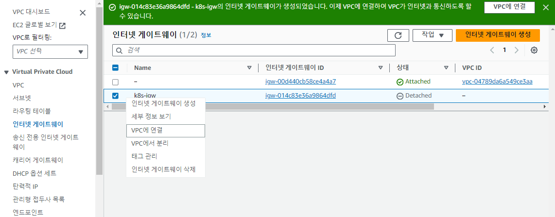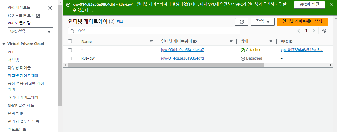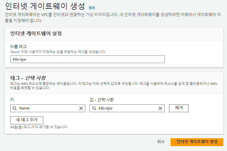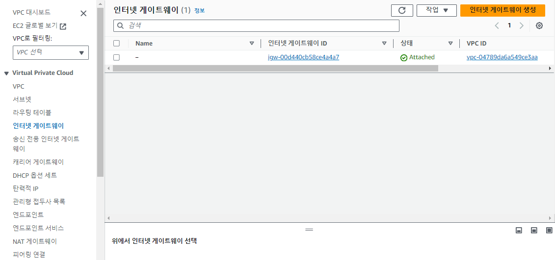 인터넷 게이트웨이는 수평적으로 확장되고 가용성이 뛰어난 중복 VPC 구성 요소로, VPC와 인터넷 간의 통신을 활성화합니다.