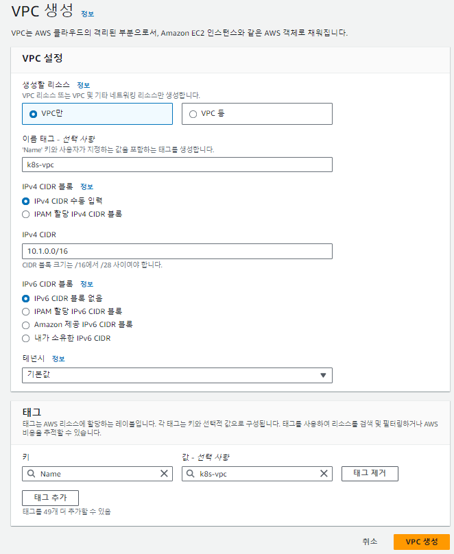 Amazon VPC (Virtual Private Cloud) 를 사용하면 정의한 논리적으로 격리된 가상 네트워크에서 AWS 리소스를 시작할 수 있습니다. 이 가상 네트워크는 AWS의 확장 가능한 인프라를 사용한다는 이점과 함께 고객의 자체 데이터 센터에서 운영하는 기존 네트워크와 매우 유사합니다.